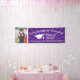 Purple and white school colours large wide yard banner, great for showing off your proud graduate, boy or girl grad, simple and classic themed indoor or outdoor banner sign! Instant preview and easy online ordering, shipped directly to you. Add your studen'ts photo, school, year and details. Radiant rays and beams of light in your high school or college colours with classic mortarboard graduation cap icon. Big giant jumbo wide horizontal yard sign or indoor/outdoor banner, Congratulations to the graduate of the class of (your year). Personalized outdoor or indoor graduation party or porch party sign banner with your graduate's year, name, high school. Amazing way to congratulate the graduate while social distancing at home or when it's time to welcome family and guests to your graduation party . Customize the background colour more by clicking "customize further" and changing the background colour.