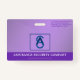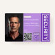 Modern ID badge design for private security professionals featuring your photo, name, job title, ID number, QR code, and expiration date. Back includes your company logo and return contact information. The bold purple layout ensures easy identification and professional branding.
