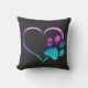 Purple Cyan Dog paw Print Heart Throw Pillow