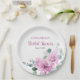 Elegant modern floral midsummer bridal shower paper plate features a bouquet of watercolor dahlia in shades of purple and pink, with lush green botanical leaves and eucalyptus. Please find more matching designs and variations from my "celebrationmoment" store.