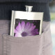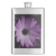 This awesome flask features a beautifully detailed photograph of an African daisy flower. The photo has been digitally altered, resulting in a pretty purple coloured flower with different shades of purple on the petals and a dark purple centre.