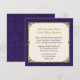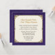 Beautiful square custom wedding invitation done in a rich purple damask background. Elegant graphics of a gold tone vintage looking frame surrounds a cream coloured text area. Text in golden brown and black is ready to personalize for your special day.