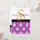 Damask Wedding Invitation with Purple and Pumpkin Orange Monogram.