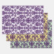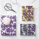Purple Damasks On White, Green and Yellow Wrapping Paper Sheet