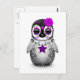 Purple Day of the Dead Sugar Skull Penguin White Postcard
