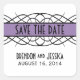 Elegant and classy Deco Flourish Save the Date Stickers featuring a fancy swirl lavender border. This stylish design is the perfect choice for announcing a vintage deco chic inspired wedding. Easy to customize, simply add your wedding details in the text fields provided. Click "Customize It" to find more personalization options.