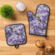 Purple Delphinium Blooms Floral Oven Mitt & Pot Holder Set