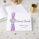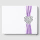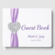 Elegant diamond heart with a purple ribbon decorate this guestbook. Wedding guest books are fun for both the couple and their celebrants. Invite attendees to leave you well-wishes at your reception, and you're guaranteed to have a keepsake to look back on for years to come. Plus, your guests will get to leave their mark on your event, not to mention put in writing whatever they didn't have a chance to express in person on the big day. Personalize the book by changing the text in the fields provided. You can change font style, size, and colour.