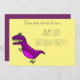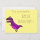 A cute fully customisable birthday party invitation suitable for a young child who loves dinosaurs. This cute design has a picture of a cartoon purple funny angry dinosaur and the background colour and text is customisable to suit.