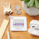 Bold letters spell out the word "LACROSSE" with the "O" replaced by a basket. The slightly distressed design makes a great personalized gift for a player, coach, team or fan. Personalize your name on the front and add a great action shot of your player on the back. Available in red, orange, yellow, purple, green, blue, black, maroon, and powder blue. Matching products available.