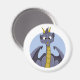 Magnet with illustration of head of a cute little purple dragon in blue circle, cute fantasy / fairy-tale design for kids by Maxi Harmony,