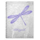 Create a unique and one of a kind journal with a Purple Dragonfly Personalized Spiral Photo Notebook. Notebook design features a colourful dragonfly, a soft white leafy vine against a light grey grunge damask background with an area to personalize with your name. Additional gift items available with this design as well as a variety of colours.