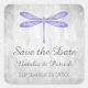Elegant and simple Wedding Save the Date Stickers featuring a purple dragonfly against a grey grunge background. This design is a unique choice for announcing a modern wedding. Easy to customize with your wedding details. Click "Customize It" to find more personalization options.