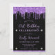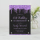 Purple Dripping Glitter Black Bokeh 21st Birthday Invitation