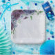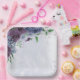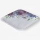 Beautiful romantic paper plate featuring dusty blue and purple flowers and some green leaves .