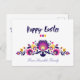 Happy Easter postcard with Purple and yellow Folklore composition inspired by polish folk-art from Lowicz region. The text on back page is fully customizable. All you need is to sign at the bottom and unique post card is ready to make someone smile.
