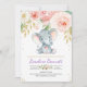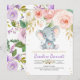 Purple Elephant Floral Baby Shower Invitation
