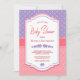 Invite your friends and loved ones with this pink and lavender elephant, polka dots and chevron striped baby shower invitation to your baby shower to celebrate your new addition to your family.