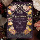Celebrate your Quinceañera in an enchanted garden! This invitation features a lush frame of purple and orange florals with real foil accents against a purple background, adding a touch of magic to your special day. Order now & set the tone for a celebration as beautiful as you are!