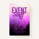 Donnez à votre équipe d'événements un look professionnel et poli avec ce badge du personnel de l'événement violet. Doté d'une silhouette animée, d'un effet lumineux et d'une typographie violette audacieuse, ce badge est idéal pour les concerts, les spectacles, les fêtes et les festivals. Customisez avec le nom de votre organisation et la date de l'événement pour une identification facile et une coordination élégante. Idéal pour les bénévoles, les équipes de sécurité ou de production qui travaillent devant ou en coulisses.
