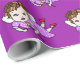 A beautiful hand drawn whimsical folk art style fairy with a purple dress gift wrap for a little girl's birthday.