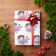A beautiful hand drawn whimsical folk art style fairy with a purple dress gift wrap for a little girl's birthday.