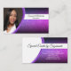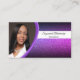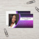 A faux purple glitter sets off the background of this business card design featuring a photo placeholder on the left with template name and title on the right. The back includes a color coordinated design with text fields for the business name and details. Replace the placeholder photo with your vertical format photograph. Fill in the template fields, remove text or edit using the design tool to select a font style, size, and color you like. The placeholder photo is courtesy pixabay.com.