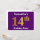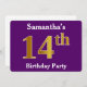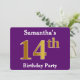 Purple, Faux Gold 14th Birthday Party; Custom Name Invitation