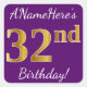 Purple, Faux Gold 32nd Birthday + Custom Name Square Sticker
