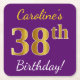 This simple paper coaster design features a message like "Caroline’s 38th Birthday!", with the "38th" having a faux/imitation gold-like colour appearance, on a purple coloured background. The name can be customized. Personalized paper coasters like these could perhaps be used at a birthday party for somebody who is celebrating their thirty eighth birthday. [~Z0000197]