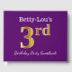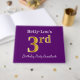 This guest book design features the ordinal number "3rd" with a faux gold-like appearance. It also features a customized name, and a purple coloured background. It could be used at a party for somebody celebrating their third birthday. [~Z0000057]