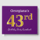 This guest book design features the ordinal number "43rd" with a faux/imitation gold-like appearance. It also features a personalized name, and a purple coloured background. It could be used at a party for somebody celebrating their forty third birthday. [~Z0000057]