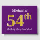 This guest book design features the ordinal number "54th" with a faux/imitation gold-like appearance. It also features a customized name, and a purple coloured background. It could be used at a party for somebody celebrating their fifty fourth birthday. [~Z0000057]