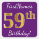 Purple, Faux Gold 59th Birthday + Custom Name Square Sticker