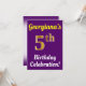 This birthday party invitation design features a message like "Georgiana’s 5th Birthday Celebration!", where the name can be customized, and where the number "5th" has a faux gold-like appearance. It also features a purple coloured background. The event details on the back can be customized. It could be used to invite people to somebody’s fifth birthday celebration or birthday party. [~Z0000121]
