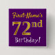 Purple, Faux Gold 72nd Birthday, With Custom Name 2 Inch Square Button