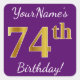 Purple, Faux Gold 74th Birthday + Custom Name Square Sticker