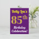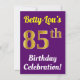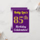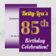 This birthday party invitation design features a message like "Betty-Lou’s 85th Birthday Celebration!", where the name can be customized, and where the number "85th" has a faux gold-like appearance. It also features a purple coloured background. The event details on the back can be personalized. It could be used to invite people to somebody’s eighty fifth birthday celebration or birthday party. [~Z0000121]