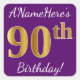 Purple, Faux Gold 90th Birthday + Custom Name Square Sticker