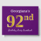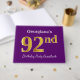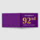 This guest book design features the ordinal number "92nd" with a faux/imitation gold-like appearance. It also features a personalized name, and a purple coloured background. It could be used at a party for somebody celebrating their ninety second birthday. [~Z0000057]