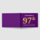 This guest book design features the ordinal number "97th" with a faux/imitation gold-like appearance. It also features a personalized name, and a purple coloured background. It could be used at a party for somebody celebrating their ninety seventh birthday. [~Z0000057]