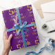 This wrapping paper design features a message like "HAPPY 54th BIRTHDAY", with the "54th" having a faux/imitation gold appearance. It also features a name that can be personalized, and a purple coloured background. It could perhaps be used when wrapping gifts being given for somebody’s fifty fourth birthday. [~Z0000134]