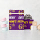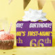 This wrapping paper design features a message like "FIRST-NAME’S 66th BIRTHDAY!", with the "66th" having a faux/imitation gold-like colour appearance, and with the name and "BIRTHDAY" in a fun, bold font. The name can be personalized, and the background is coloured purple. Wrapping paper like this could perhaps be used when wrapping birthday gifts being given to somebody in celebration of their sixty sixth birthday. [~Z0000206]