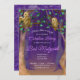 Forêt violette enchantée, chouettes de grange sage perchées dans les arbres verdoyants. L'invitation de style bat mitzvah de livre de Whimsical est polyvalente pour les thèmes violets, violets, boisés, sagesse, hibou, et la nature bat mitzvah. Cette invitation au hibou violet est aussi une idée unique pour un bat mitzvah jumeau !
