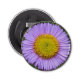 Convenient, take-along, magnetic bottle opener that features the photo image of a pretty, purple Fleabane Daisy flower with large, yellow centre. A lovely, floral design!