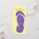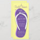 Big purple flip flop bridal shower invitation with a yellow polka dot background. Personalize text as needed add registry information to the back or delete it if unwanted.