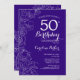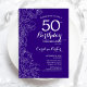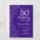 Purple Floral 50th Birthday Party Invitation. Minimalist modern design featuring botanical outline drawings accents and typography script font. Simple trendy invite card perfect for a stylish female bday celebration. Can be customized to any age. Printed Zazzle invitations or instant download digital printable template.