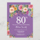 Purple Floral 80th Birthday Invitation for Women. Watercolor Floral Flower. Purple Lilac Lavender Violet Background. Pink, Yellow, Orange, Purple Flower. Adult Birthday. 13th 15th 16th 18th 20th 21st 30th 40th 50th 60th 70th 80th 90th 100th, Any Ages. For further customization, please click the "Customize it" button and use our design tool to modify this template.