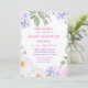 Purple Flowers Baby Shower Invitation. This elegant invitation is surrounded with pretty purple, pink, and white flowers. Add your party details to see what your invitation will look like before purchase. Our template makes it easy to change the wording for your baby shower.