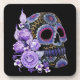 Purple Floral Black Sugar Skull Day Of The Dead Coaster